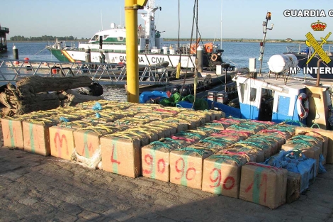 Los dos detenidos eran los tripulantes del pesquero 'Darío Pedro', embarcación que fue abordada a las 23.15 horas del domingo por los guardias civiles de una de las patrulleras del Servicio Marítimo que se hallaba en la zona realizando labores de prevención del narcotráfico. Esta embarcación se disponía a entrar por el río Carreras, en el término municipal de Isla Cristina, cuando fue sorprendida por la Guardia Civil.