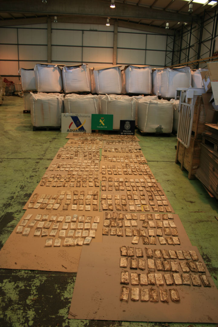 Cuando el contenedor llega al puerto de Vigo, se procede a su apertura de forma conjunta, localizando un total de 60 kilogramos de cocaína distribuida en mas de 600 planchas de cocaína perfectamente disimulada en los palés que servían de base a los diferentes pilas de cajas de fruta.