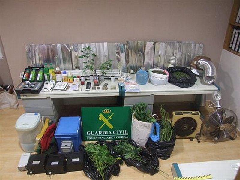 Los agentes realizaron varios registros domiciliarios en las localidades de Aguiño y Carreira, en Ribeira, en uno de los cuales, alquilado por uno de los detenidos, lograron descubrir un cultivo de plantas de cannabis en gran cantidad, así como material para la producción de resina de cannabis.