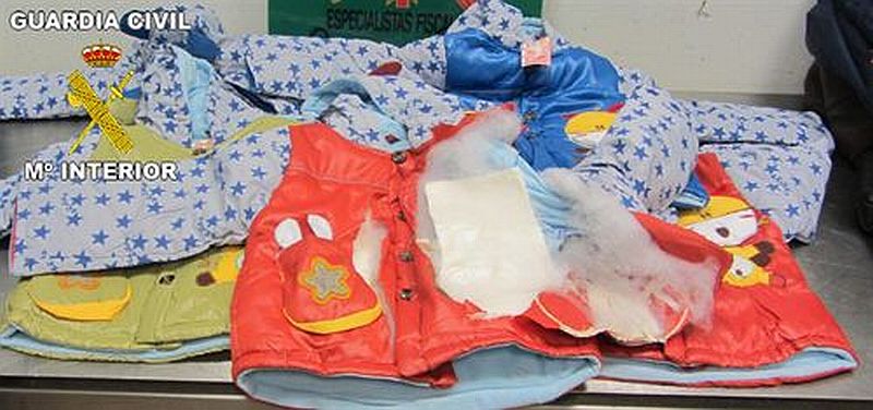 En el interior de las maletas se encontraban diferentes prendas de vestir de niño, bolsos, chalecos y una alfombra de elaboración artesanal, en las que se hallaron practicados numerosos dobles fondos de una sustancia que en un posterior análisis resultó ser cocaína de gran pureza con un peso de 14.372 gramos.