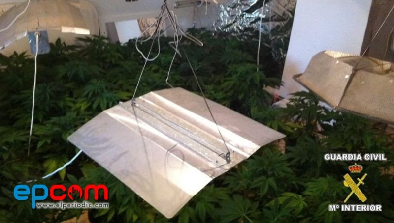 Una de las habitaciones de la vivienda había sido acondicionada con lámparas halógenas, ventiladores y medidores de humedad para conseguir las condiciones óptimas que permitieran acelerar el crecimiento de las plantas.