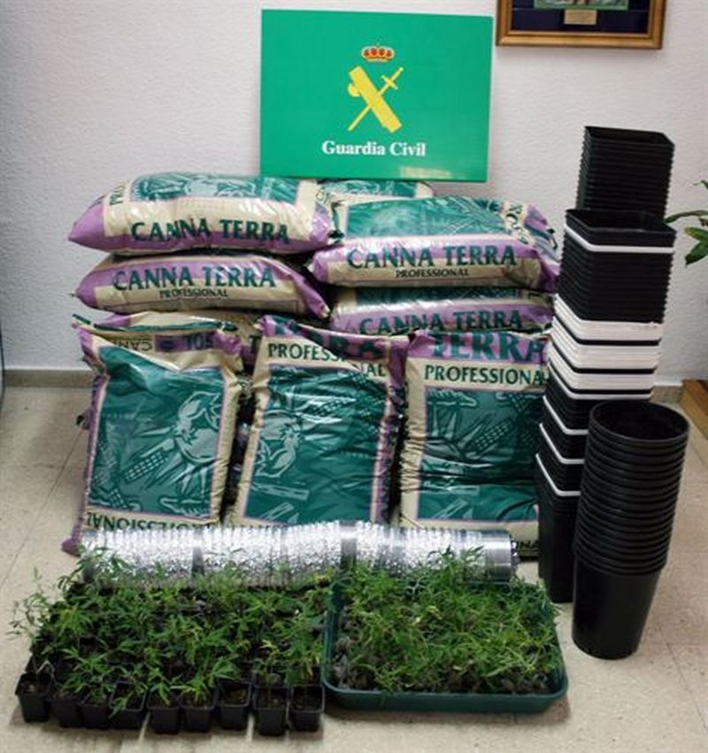 La detención se ha producido este el viernes en el kilómetro 100, cuando los acusados de un delito contra la salud pública viajaban en un Renault 11 en el que llevaban 169 plantas de marihuana de una altura aproximada de 15 centímetros, 16 sacos de sustrato para cultivo, 113 macetas vacías y un tubo flexible extractor de color gris, utilizado frecuentemente en los cultivos de marihuana.