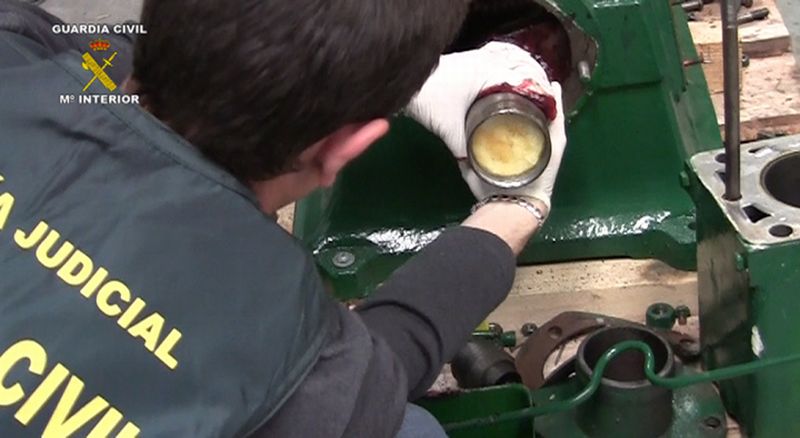 La droga viajaba oculta, desde Colombia, en un hueco practicado en el cigüeñal de la maquinaria