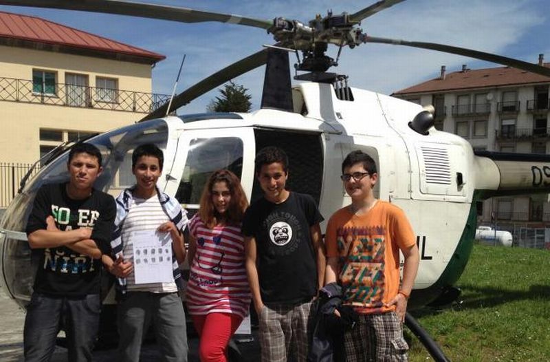 Tampoco les pasaron desapercibidos el helicóptero ni el grupo de TEBYL, técnicos especialistas en la búsqueda y localización de artefactos explosivos. Con ellos los chicos se pusieron sus ropas, cascos y escudos, «muy pesados, aunque me planteo meterme en este grupo o el de agua», asegura Javier Queipo.