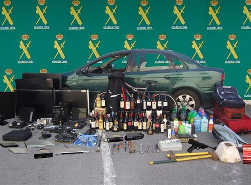 Tras las detenciones se realizaron dos registros domiciliarios, uno en la localidad de Castro Urdiales y otro en Otañes, donde se recuperaron numerosos efectos robados como televisores, ordenadores, bicicletas, reproductores de dvd y consolas, numerosas botellas de bebidas alcohólicas, un arma corta de aire comprimido, productos de cosmética, etc.