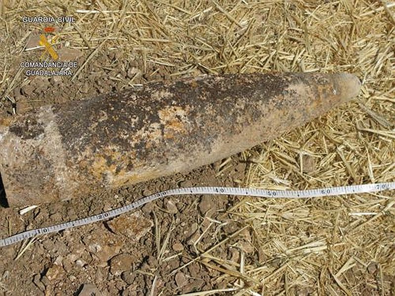 La Guardia Civil ha desactivado un proyectil de artillería utilizado en la Guerra Civil, calibre 130 milímetros, que fue localizado por un vecino en las cercanías del cementerio de la localidad de Miralrio (Guadalajara).