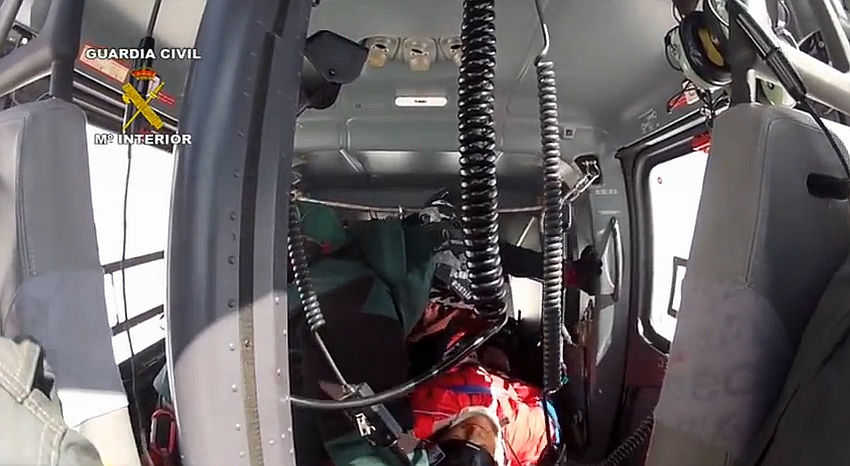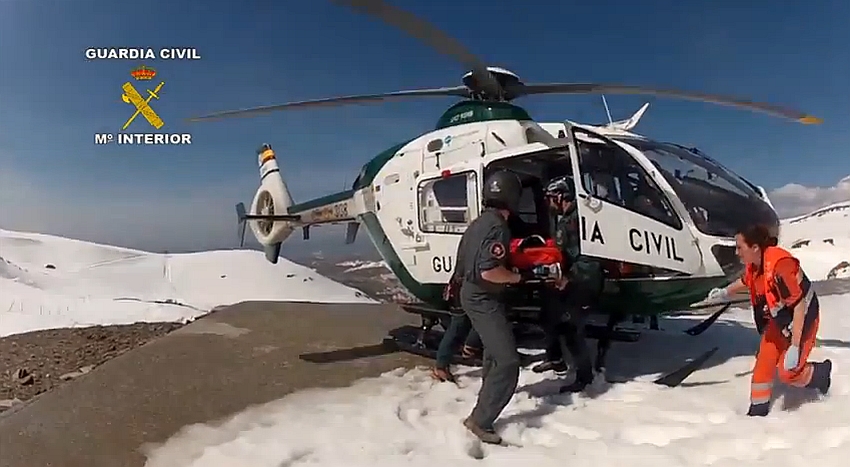 A continuación, es introducido en el helicóptero para ser trasladarlo al helipuerto de Borreguiles, donde el helicóptero del 061 espera para ser evacuado al hospital de Traumatología de Granada dada la gravedad de sus heridas.