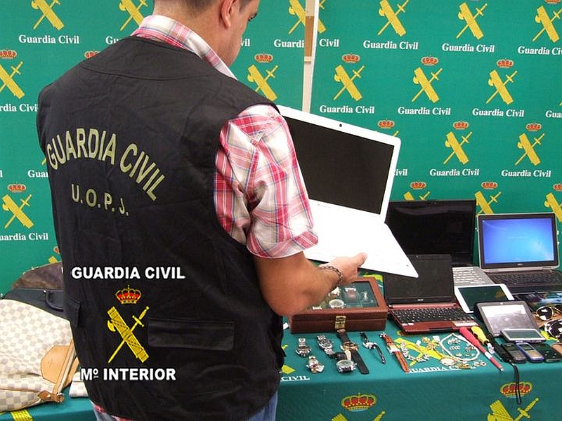 La Guardia Civil, en el marco de la operación “NOGALES”, ha desarticulado en la provincia de Málaga un grupo organizado dedicado al robo en el interior de viviendas de verano autores de más de 40 robos, deteniendo a sus 5 integrantes. En los registros practicados se han intervenido numerosos de efectos procedentes de los robos, como portátiles, móviles, joyas, relojes, etc, así como dinero en metálico y prendas de vestir utilizadas para cometer los robos.