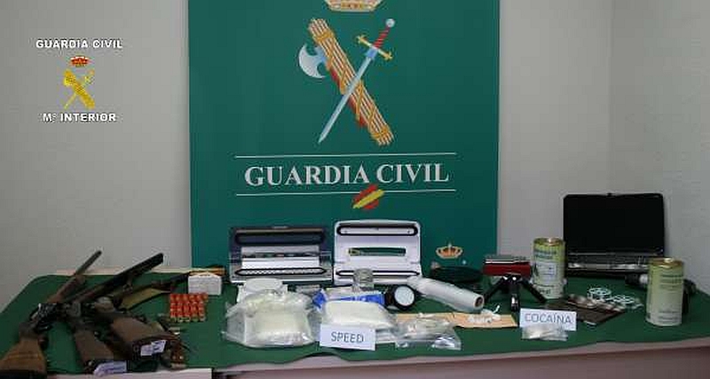 Además se han intervenido tres escopetas y 21 cartuchos del calibre 12; 1.762 gramos de speed; 30 gramos de cocaína; 2 gramos de heroína; 1 ordenador portátil; 2 disco duro; 1 vehículo; 8 teléfonos móviles; y 1 machete.