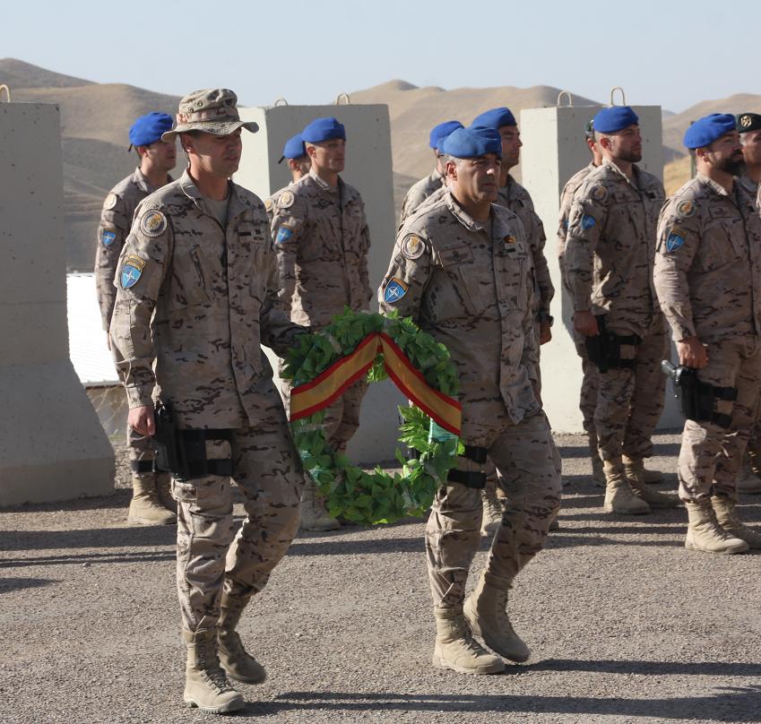 Durante el homenaje se entonó el himno de la Guardia Civil y el Comandante Clemente junto con el intérprete que se encuentra trabajando actualmente con los equipos que forman a la Policía de Afganistán depositaron una corona de laurel en el monolito construido en honor a los tres fallecidos.