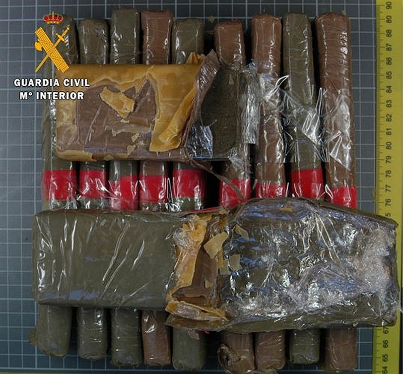 La detención se produjo en torno a las 10.00 horas de este viernes, cuando una patrulla de Tráfico de la Benemérita procedía a regular la circulación y a atender a un usuario que había sufrido un accidente de tráfico --también fue detenido por dar positivo por alcoholemia--, y observaron que el conductor de uno de los vehículos que se encontraban en la fila lanzaba una bolsa a la cuneta .