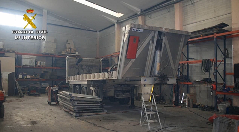 Fruto de las gestiones realizadas por los agentes encargados del caso, se pudo comprobar que se trataba de un grupo organizado que utilizaba una cabeza tractora para sustraer los diversos remolques, que eran depositados en una nave industrial, utilizada como taller clandestino para desguazar los mismos.