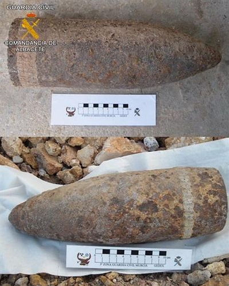 La Guardia Civil ha desactivado dos proyectiles de artillería, de 120 milímetros de calibre, que se encontraban en avanzado estado de deterioro y con las espoletas intactas, en dos actuaciones distintas realizadas en los términos municipales de Almansa y Caudete. Ambos proyectiles parecen proceder de la última Guerra Civil española.