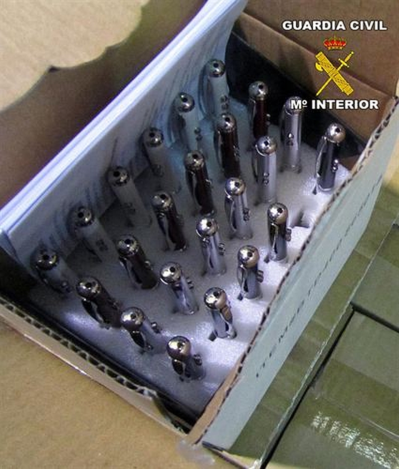 Agentes de la Patrulla Fiscal y de Fronteras de la Guardia Civil de Calvià incautaron el pasado 10 de julio un almacén de venta al por mayor ubicado en la localidad mallorquina de Marratxí un total de 6.900 punteros láser, que fueron remitidos al Govern en el marco de la primera operación tras la puesta en marcha por parte de la Delegación del Gobierno del protocolo de actuación para combatir el uso de estos aparatos contra los aviones.