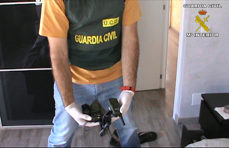 Con ocasión de las detenciones y los registros domiciliarios practicados en la fase de explotación, los agentes intervinieron diverso material empleado en los robos (transmisores portátiles, herramientas, pasamontañas, guantes, sistemas electrónicos e informáticos, documentos de identidad falsos, etc.).