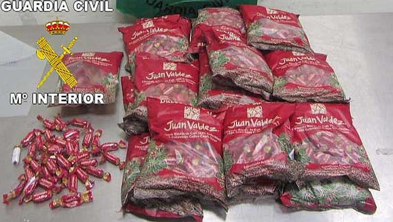 La primera intervención era desarrollada a primera hora del lunes, a la llegada de un vuelo procedente de Bogotá, allí los agentes de la Guardia Civil hicieron pasar medidas fiscales a un pasajero, localizando entre su equipaje 20 bolsas de caramelos. Tras analizar el contenido de los mismos resultaron contener cocaína, hecho que motivo la detención de un ciudadano español de 36 años, que tiene fijada su residencia en Santa Pola (Alicante).