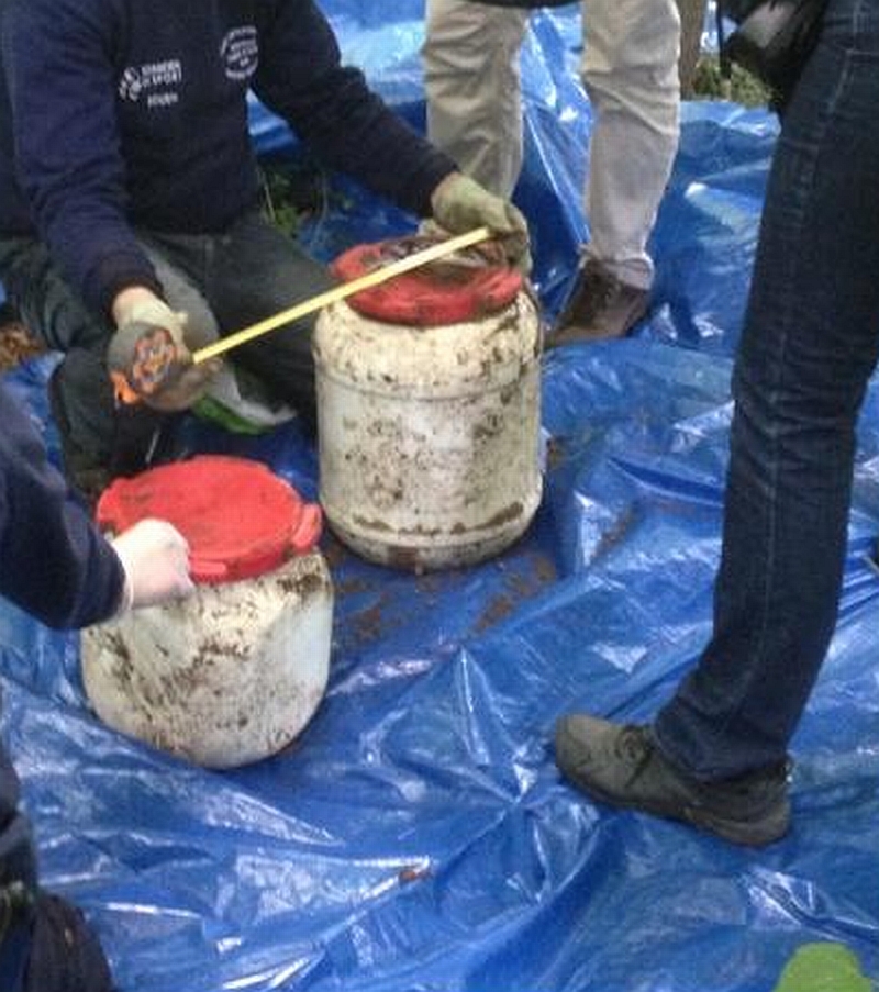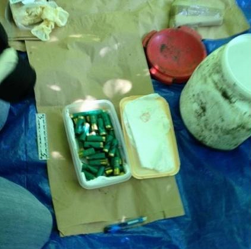 En su interior y dentro de dos bidones de plástico herméticamente cerrados se ha encontrado el siguiente material: