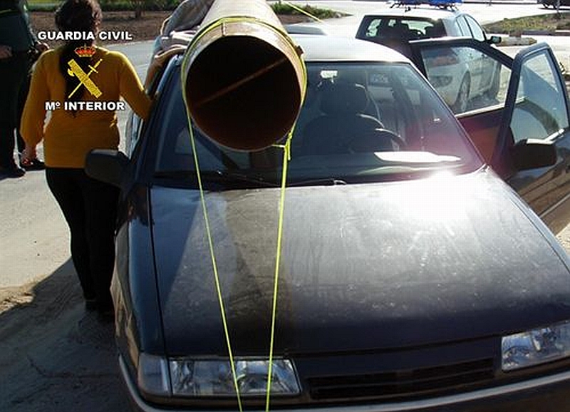 De forma paralela y en el marco de los servicios del mismo plan, se ha desarrollado otra actuación, en Fuente Álamo, después de que agentes especializados en prevención de la seguridad ciudadana observaran un vehículo que transportaba sobre el techo una tubería de grandes dimensiones.