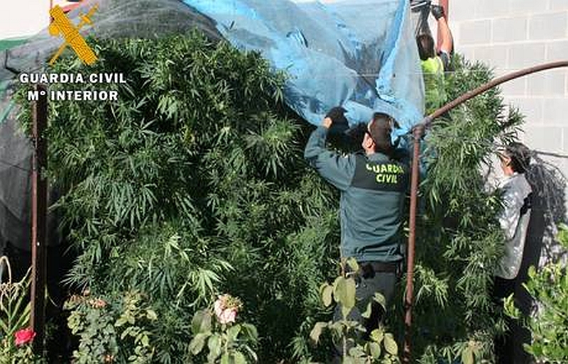 Durante esta inspección, los agentes localizaron, en una zona de terreno cubierta con lonas, 54 plantas de marihuana en avanzado estado de crecimiento. Igualmente hallaron en el interior de una caseta 5 plantas de dicha sustancia y 916 gr de cannabis sátiva seca, y en una nave anexa a este habitáculo, se intervinieron 8 plantas más. (Un total de 67 plantas).