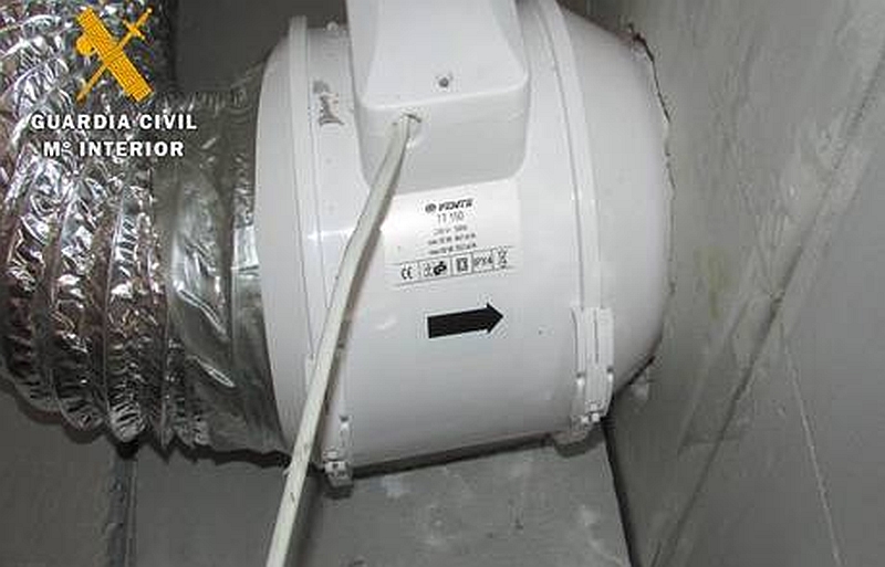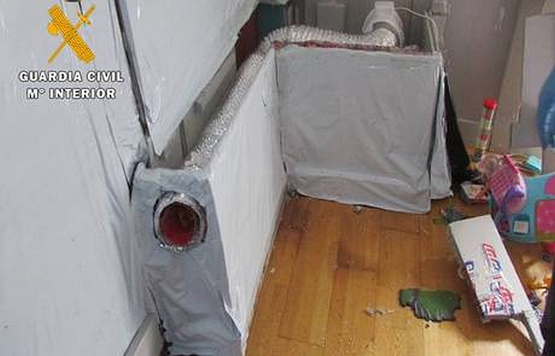 Durante el registro los agentes observaron una habitación ubicada en la primera planta, totalmente recubierta de paneles aislantes, elementos eléctricos y sistemas de ventilación precintados, contando con la instalación de un tubo extractor de aire, todo ello acondicionado para el cultivo de gran cantidad de plantas de marihuana.