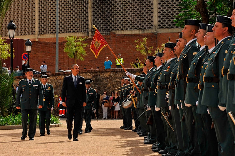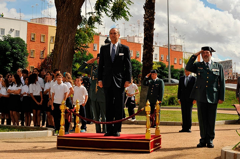 El Director General de la Guardia Civil, Arsenio Fernández e Mesa y el General Jefe de la Zona de Extremadura, José Hurtado, han presidido en el Parque de los Sitios el acto de izado de la Bandera Nacional, que se ha celebrado por primera vez en Badajoz.