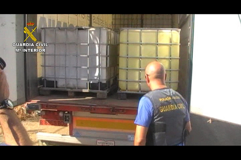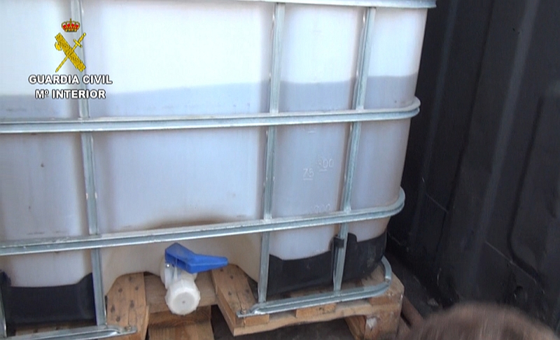 En el transcurso de la investigación, una patrulla de Tráfico identificó un camión en el que hallaron seis contenedores cargados con 1.000 litros de gasoil. Una vez analizados, se comprobó que estaban sin aditivar, por lo que se sospechó habían sido extraídos directamente de la tubería de un oleoducto.
