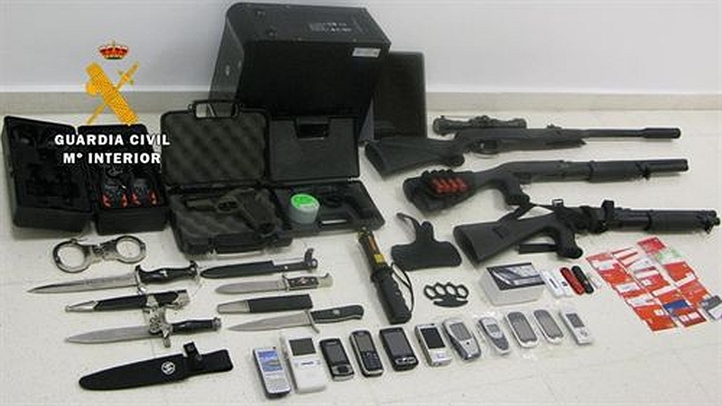 Un registro judicial en el domicilio de ambos ha permitido la intervención de un ordenador y cin 'pen drive', que están siendo analizados, varias tarjetas de crédito, cartillas de ahorro bancarias y documentación variada que les vincula con los hechos; 11 terminales móviles, dos pistolas y tres carabinas de aire comprimido, cinco cuchillos con simbología nazi, un puño americano, un juego de grilletes y 1 par de emisoras.