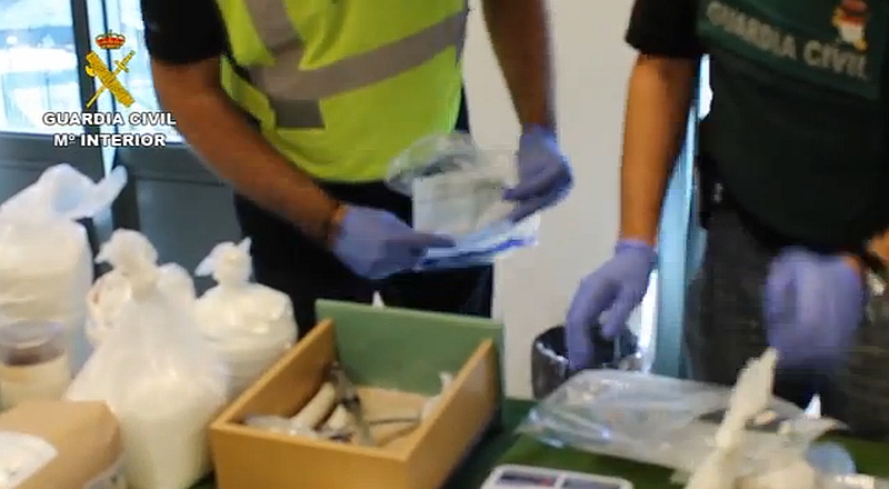 Entre los registros realizados, hay que destacar el llevado a cabo en un trastero de Palma de Mallorca, que servía de laboratorio clandestino para la preparación y el almacenamiento de sustancias estupefacientes donde la Guardia Civil ha encontrado: