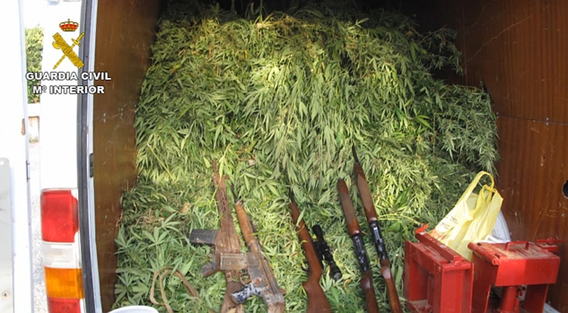 Además de la droga, se hallaron ocultos 13.300 euros en billetes de 50 euros falsificados, dos pistolas con abundante munición, dos fusiles “CETME” y 371 euros en monedas de curso legal.