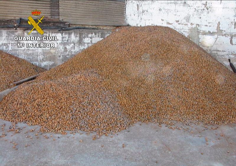 El total de almendra sustraída en la zona ascendía a unos 9.000 kilogramos cuyo valor en el mercado se estima cercano a los 12.000 euros.