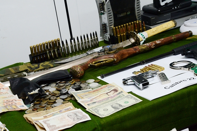 En estos registros se ha intervenido una pistola automática del calibre 22, dos pistolas simuladas, un trabuco, cuatro armas blancas como una katana o un machete, 29 bellotas de hachís, 624 gramos de marihuana en cogollos, joyas procedentes de robos por valor de 15.000 euros, una motocicleta robada, un comprobador de billetes falsos y dos vehículos que empleaban en sus robos.