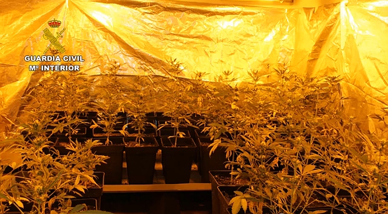 La Guardia Civil se ha incautado 1.098 plantas en fase de crecimiento, ocho kilogramos de cogollos secos, varios vehículos de alta gama, ordenadores y otros aparatos electrónicos, así como gran cantidad de útiles para el desarrollo del cultivo de la marihuana.