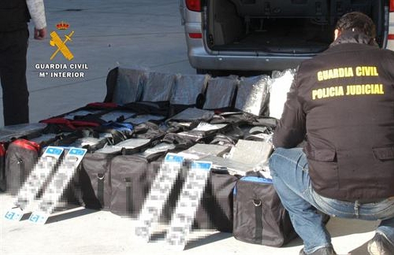 En el registro del interior de la furgoneta, modelo Mercedes y de origen francés, se descubrieron 24 bultos, cuyo contenido eran bloques de una sustancia compacta de color marrón, que resultó ser hachís, con un peso de 800 kilogramos.