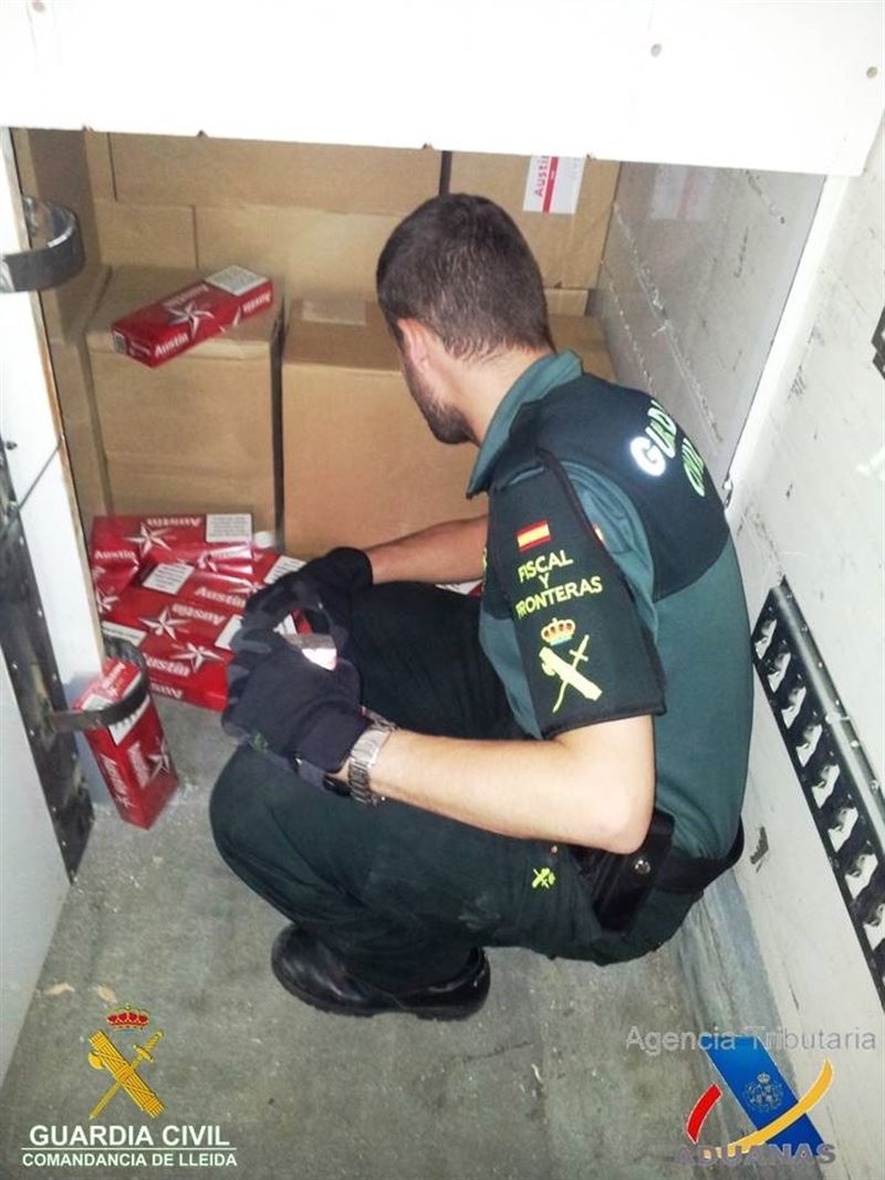 La Guardia Civil detuvo el lunes en la aduana de La Farga de Moles (Lleida) al conductor de un camión que llevaba 60.000 cajetillas de tabaco rubio de contrabando.