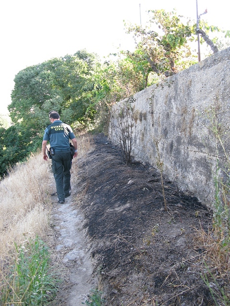 En ese momento interviene la Patrulla de la Guardia Civil, procediendo a sofocar el incendio originado, que como consecuencia de su rápida actuación fue apagado con sus propios medios, afectando el fuego a una extensión de solo diez metros cuadrados.