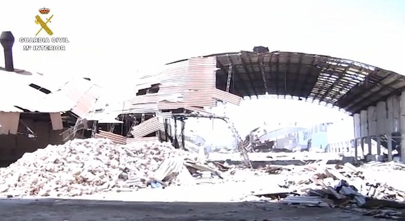 Los imputados estaban realizando, ayudados de maquinaria y sin ningún tipo de protección, tareas coordinadas de corte, derribo, selección y recogida de metales pertenecientes a la estructura, llegando a derribar parcialmente los 23 edificios que componían la estructura de la empresa y dejando únicamente sobre el solar de la empresa el fibrocemento de la cubierta.