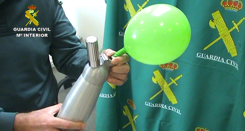La Guardia Civil en colaboración con la Policía Local de Villanueva de la Cañada (Madrid), en una inspección llevada a cabo en un local de copas han intervenido 14 cajas con 700 envases de óxido nitroso, conocido como gas de la risa, que estaban siendo dispensadas a los clientes del establecimiento.