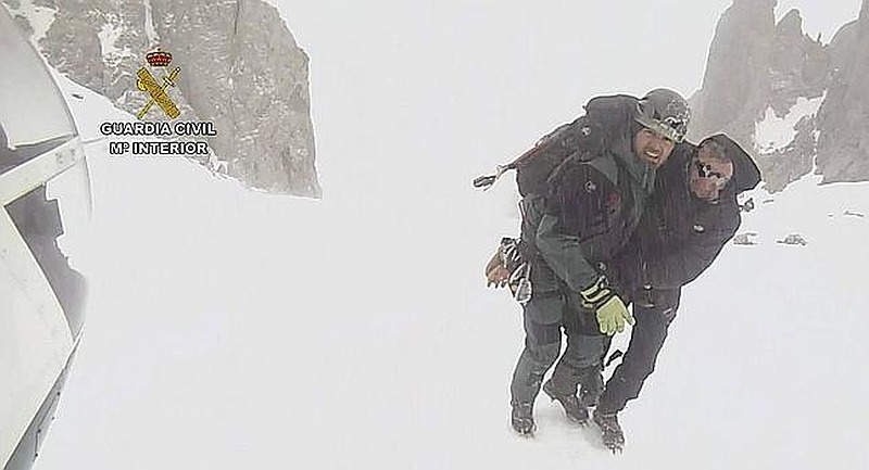 Los agentes llegaron hasta donde estaba el hombre tras recibir al mediodía del pasado sábado, día 22, el aviso de otros tres montañeros que iban con él y que alertaron al servicio de emergencias 112 de la caída, que se produjo cuando ascendían por una pared vertical de La Canalona. Mientras los guardias civiles se acercaban a la zona, las condiciones climatológicas cambiaron y comenzó a nevar fuerte en la zona, además de haber niebla y viento. Por ello, al llegar el helicóptero con base de Asturias los pilotos comunicaron que solo tendrían una oportunidad para rescatar al hombre con la aeronave.