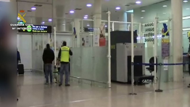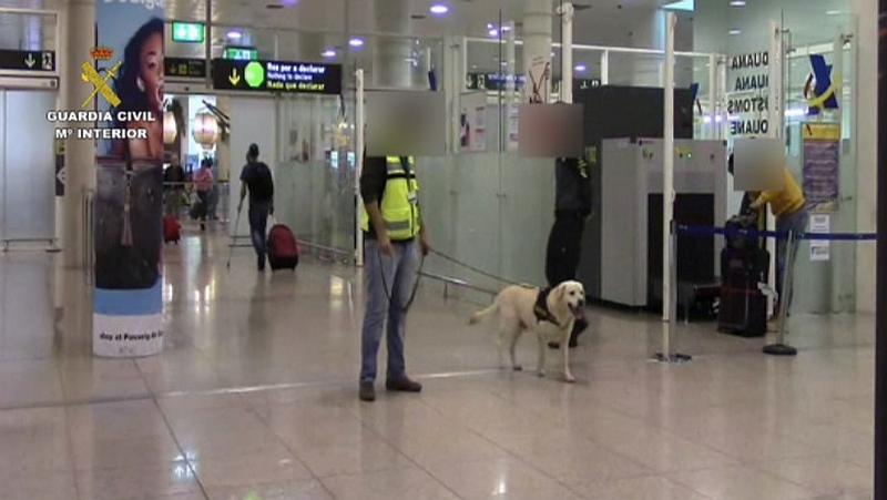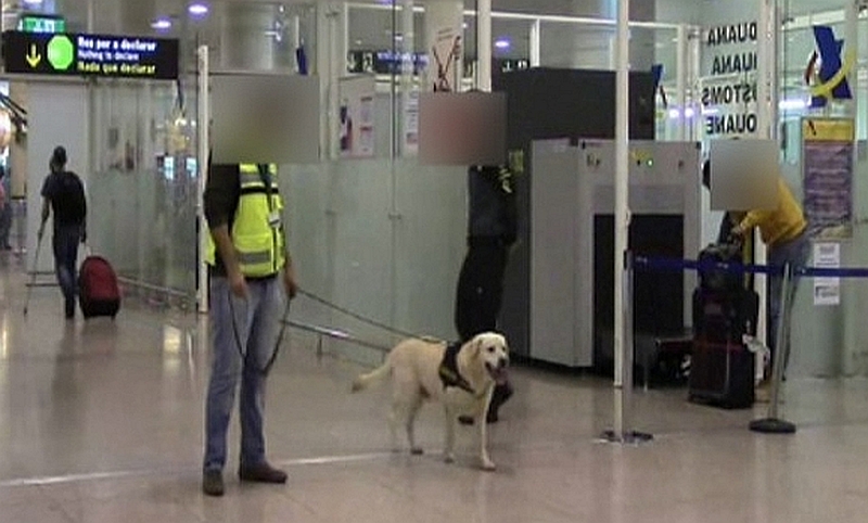 Tras la llegada del vuelo procedente de Sao Paulo (Brasil), cuando sus pasajeros se encontraban retirando los equipajes de la cinta transportadora, Pipo -un veterano perro labrador de ocho años- comenzó a seguir a un hombre joven que ya había recogido sus maletas.