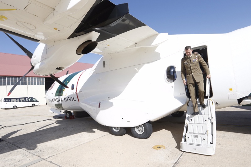 Don Felipe también ha embarcado a bordo de un avión CN-235, donde se le han mostrado los sistemas de los que dispone para prestar su labor cotidiana. Posteriormente, ha asistido a un simulacro de misión, enlazando con un avión del Cuerpo desplegado en Sigonella (Italia) en la "operación Hermes" de FRONTEX y con el Centro de Coordinación de Vigilancia Marítima de la Guardia Civil (CECORVIGMAR), situado en la Dirección General del Cuerpo en Madrid.