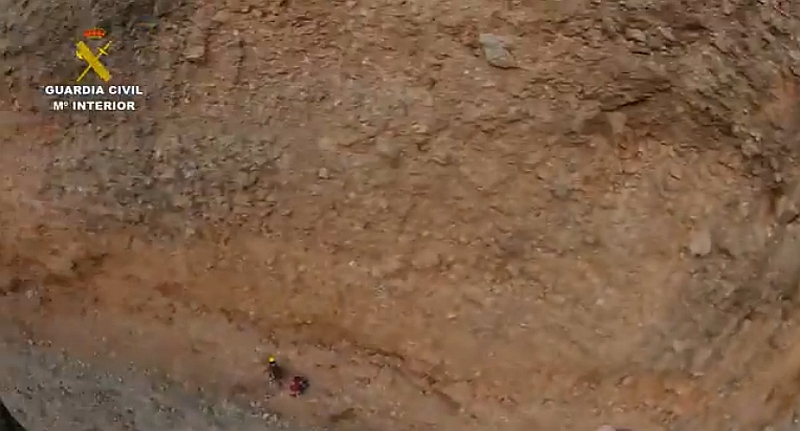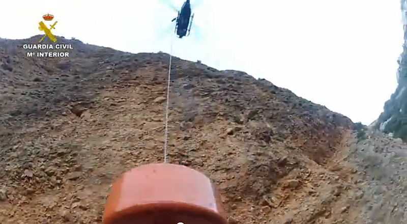 En un primer momento se intentaba dejar a un especialista en el lugar donde se encontraban los enriscados, no siendo posible, teniendo que depositarlo a unos 12 metros más abajo y subir escalando hasta el lugar.