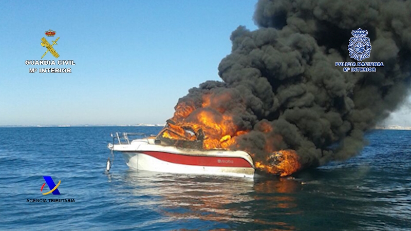 Como consecuencia del disparo de la bengala se produjo una explosión en la embarcación de los narcotraficantes que provocó su incendio, saliendo despedidos al mar los ocupantes. Mientras algunos agentes se lanzaban al mar a rescatar a los narcotraficantes, otro intentaba apagar el incendio. Tras el rescate, y una vez evaluadas las heridas producidas por la deflagración, se solicitó la presencia urgente de otras embarcaciones para el traslado urgente de los heridos a la costa.
