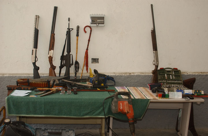 Se han incautado 4 armas de fuego, 1 pistola simulada, munición de distinto calibre y diversas armas blancas prohibidas, así como documentación que implica a los autores en estas actividades ilícitas