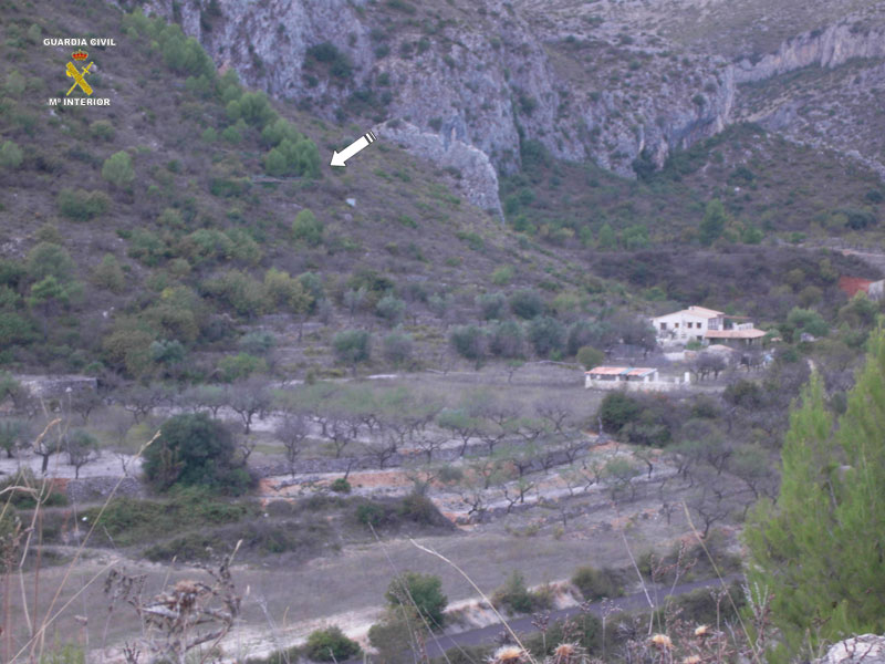 Tanto la vivienda como la plantación se encontraban en un paraje aislado, montañoso y de muy difícil acceso del término municipal de Castell de Castells