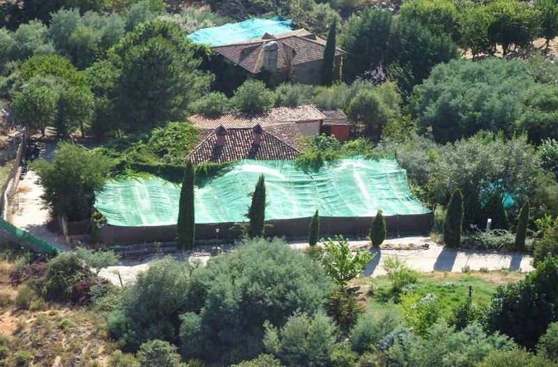 La finca se encontraba perfectamente vallada en todo su perímetro con lonas y mallas tapando la vista al interior así como carteles prohibiendo el paso y varios perros de guarda por lo que la hacían prácticamente indetectable desde tierra.