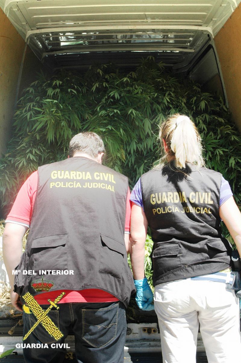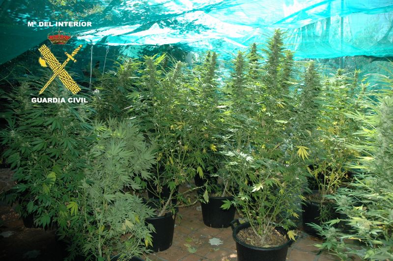 Tras realizar el registro en el interior de la finca se intervinieron casi 800 plantas de Cannabis-Sativa (Marihuana) con un peso total de 320 kilogramos, 83 de ellas secas y listas para su consumo, 23 kilogramos de cogollos de Cannabis, dos pistolas automáticas, un revolver y una navaja automática, además de cableado eléctrico, lámparas de calor, transformadores, bombillas, ventiladores, secadoras, sistema de refrigeración, estufas, radiadores, filtros, abonos, fertilizantes, nutrientes de floración, extractores, bombonas y sistema de refrigeración de aire utilizados para continuar con la producción en circunstancias meteorológicas menos favorables.