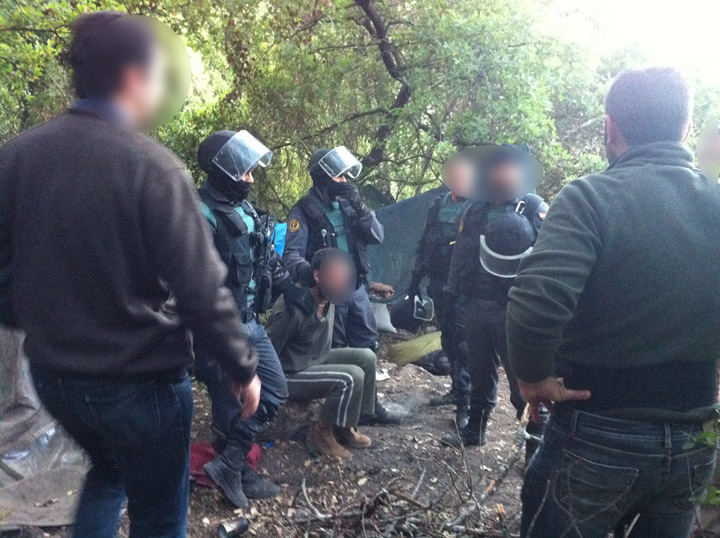 Cuando los agentes irrumpieron en su campamento el individuo intentó huir lanzándose al vacío desde unos tres metros a un arroyo, arrastrando en su caída a dos guardias civiles con los que forcejeaba, mientras se resistía a la detención.