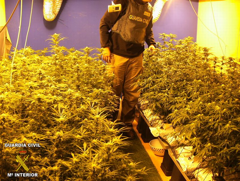 Igualmente, en uno de los domicilio de los detenidos en la localidad de Alovera (Guadalajara), los agentes hallaron en el garaje de su vivienda, un cultivo de 90 plantas de cannabis con todo un sofisticado montaje para su producción (lámparas de calor, riego automático, medidores de temperatura, etc.)