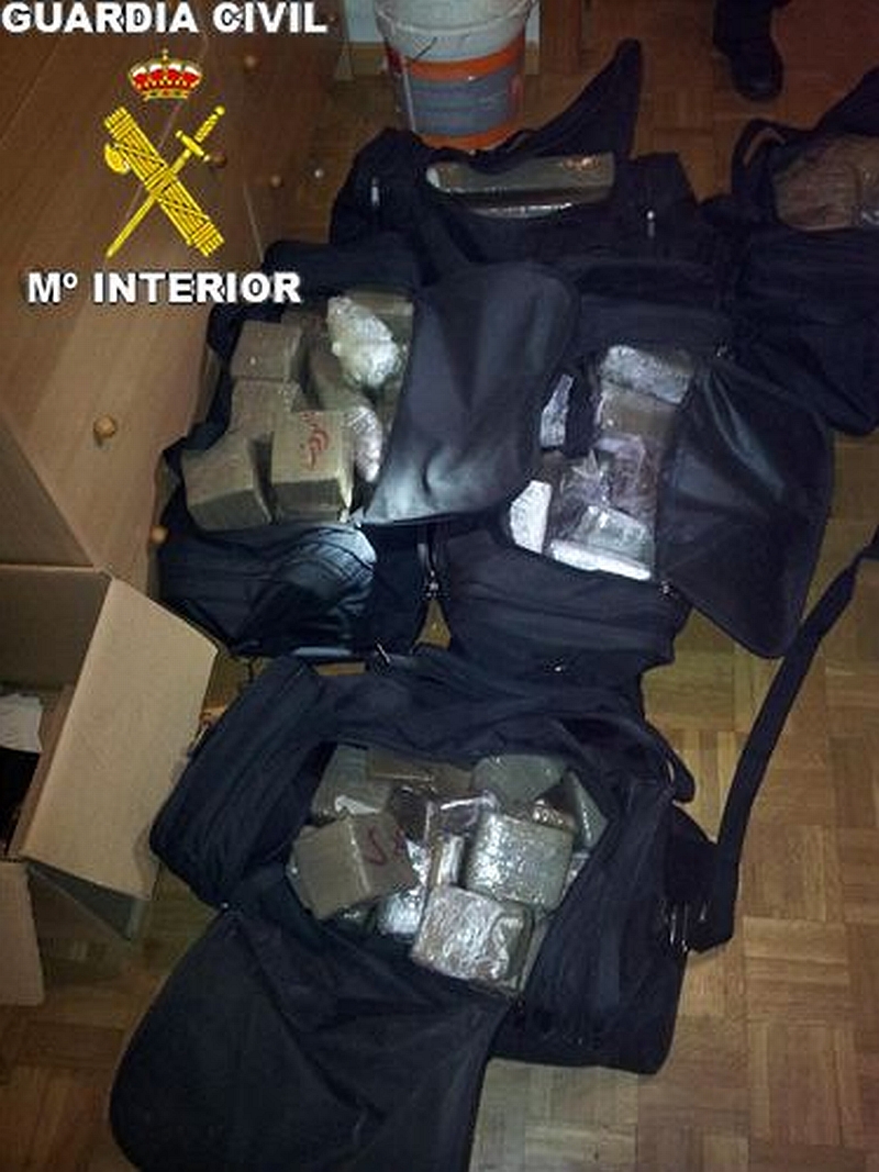 La Guardia Civil procedió a la detención de estos dos individuos, ambos de origen marroquí, de 30 y 34 años, por su presunta implicación en un delito contra la seguridad pública. Poco después, tras solicitar la correspondiente autorización judicial, se realizó el registro domiciliario en su vivienda, donde los agentes intervinieron 141.429 gramos de hachís, distribuidos en seis bolsas de viaje y una maleta.