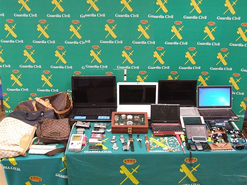 La Guardia Civil, en el marco de la operación “NOGALES”, ha desarticulado en la provincia de Málaga un grupo organizado dedicado al robo en el interior de viviendas de verano autores de más de 40 robos, deteniendo a sus 5 integrantes. En los registros practicados se han intervenido numerosos de efectos procedentes de los robos, como portátiles, móviles, joyas, relojes, etc, así como dinero en metálico y prendas de vestir utilizadas para cometer los robos.